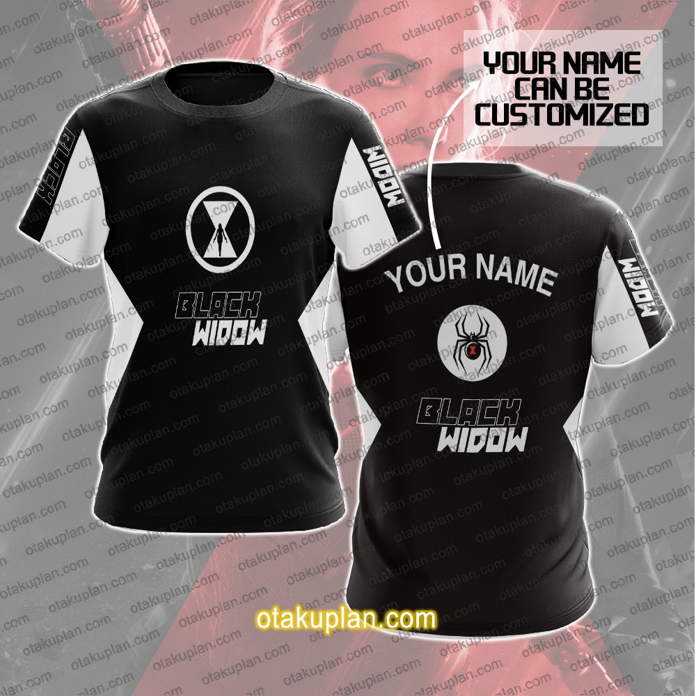 Black Widow Black And White Custom Name T-shirt