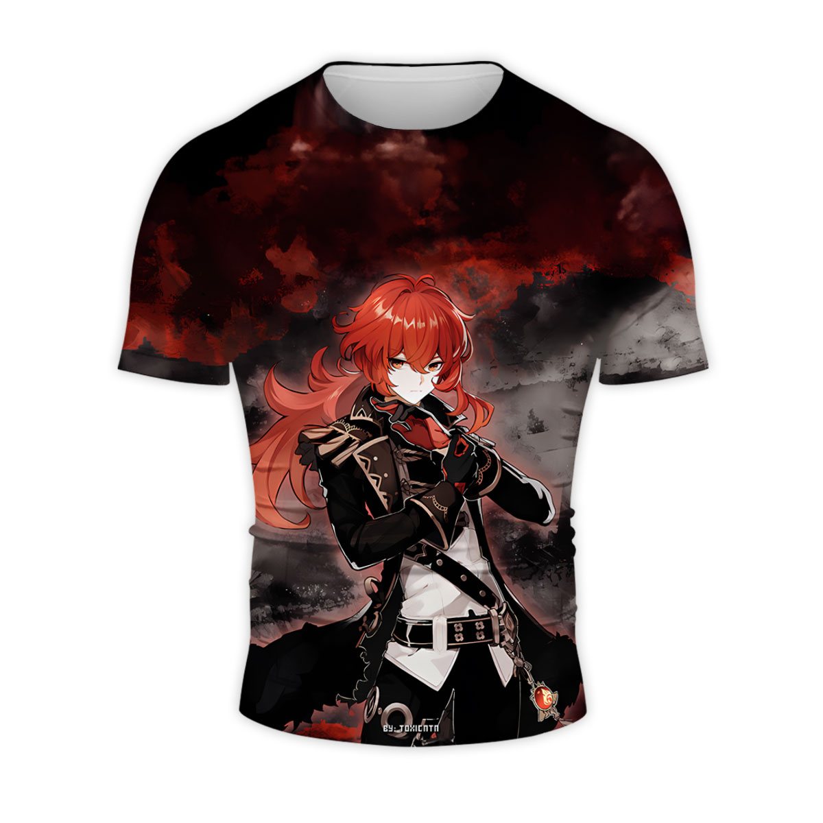 Genshin Impact Diluc In Red Black Background Anime Apparel